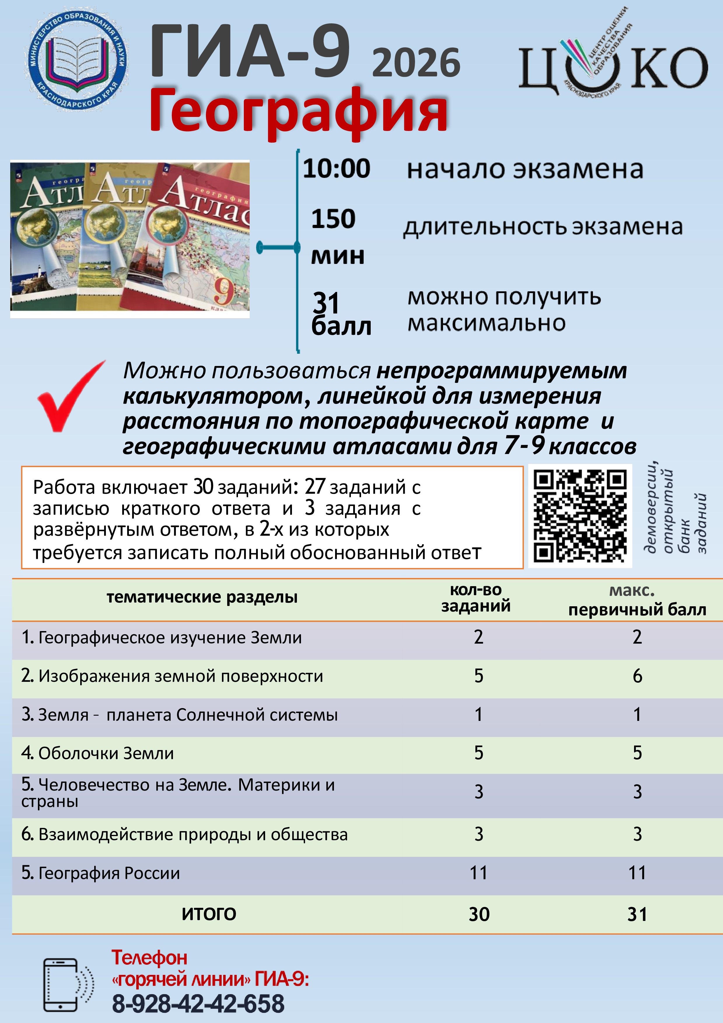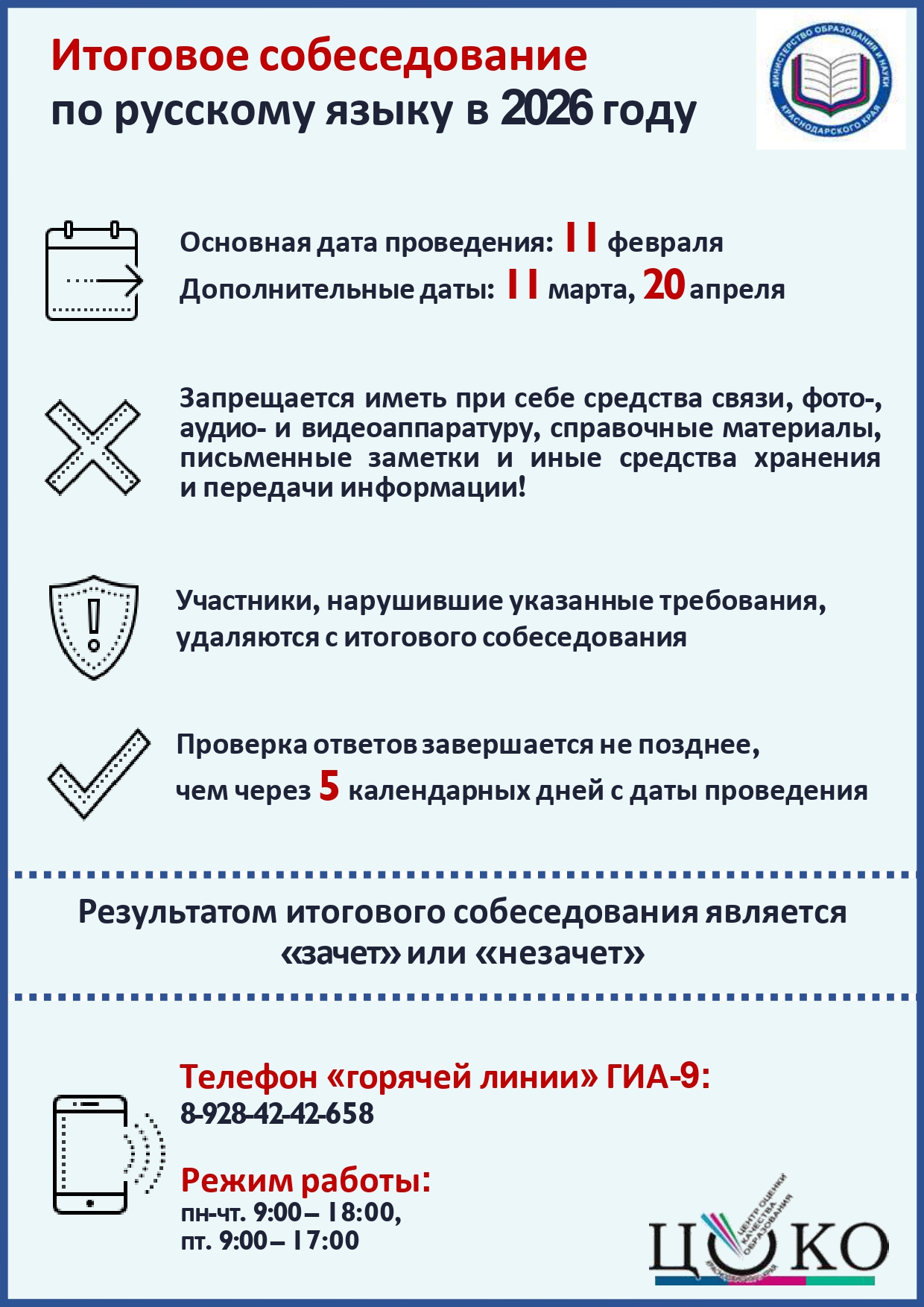 Расписание проведение ГИА в 2026 году <<скачать>>